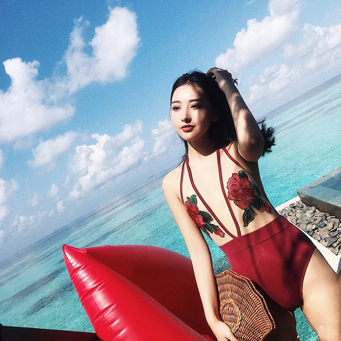 ins wind sexy bikini deep V net red 2021 new high fork ultra-exposed even skinny spa swimsuit woman