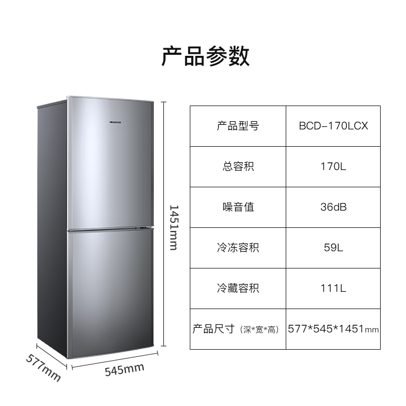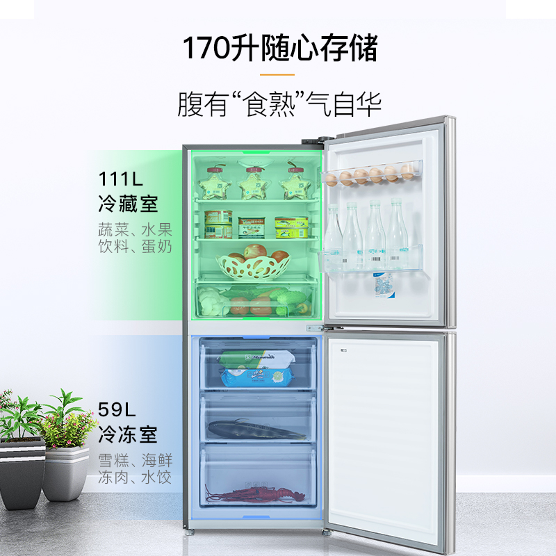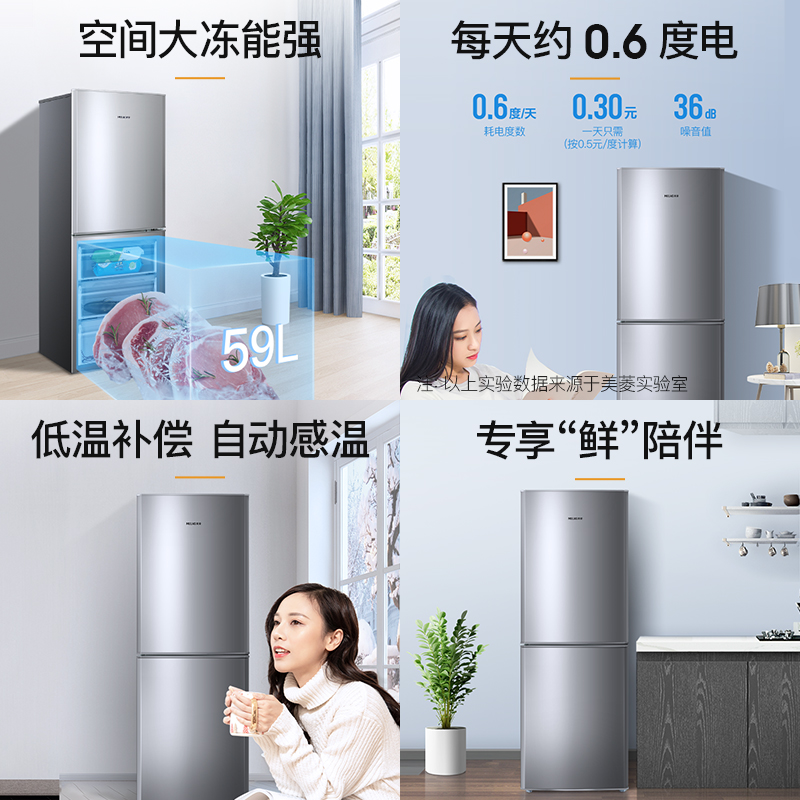 MeiLing BCD-170LCX two-door small refrigerator Small household energy-saving refrigerator freezer