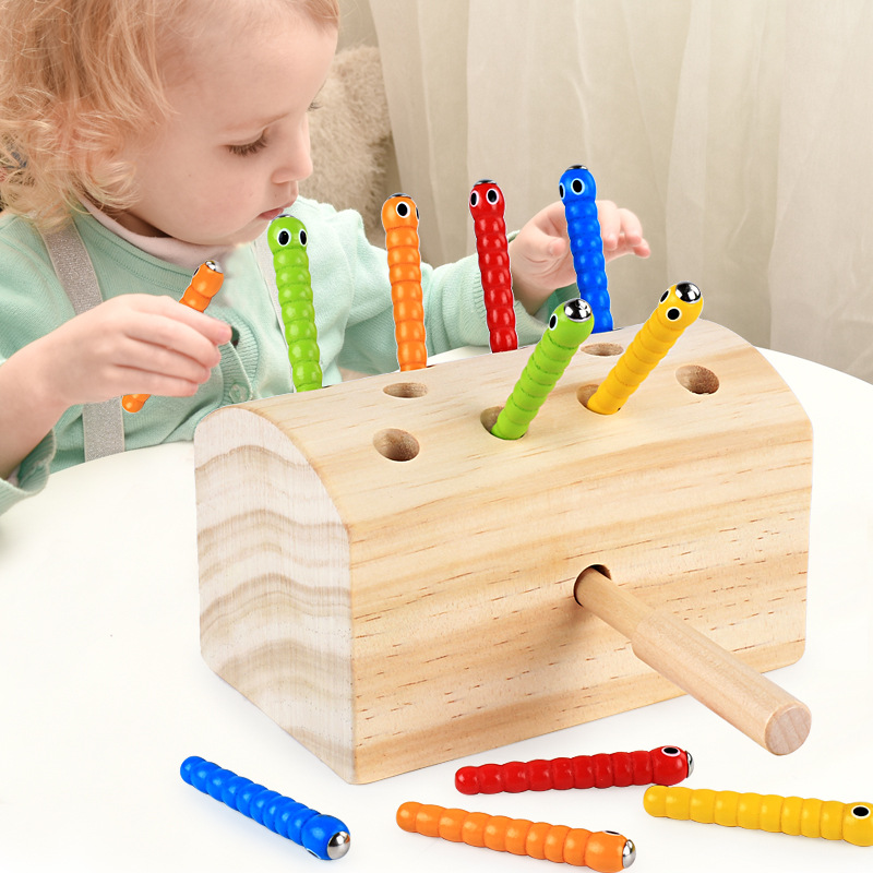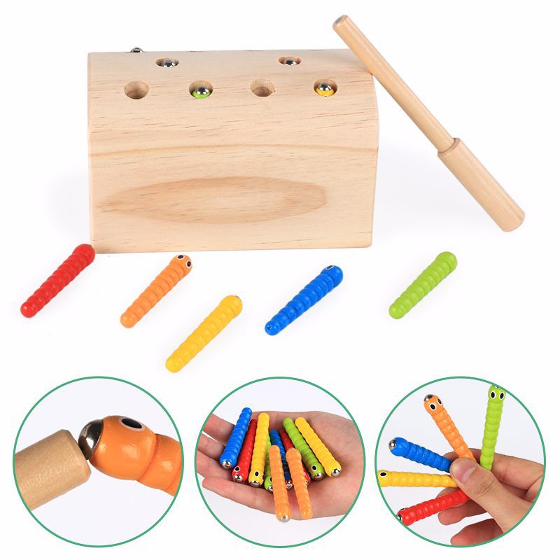 Catch Worms Toy Children Phishing Hair Caterpillars Puzzle 1-3-year-old Early teaching catch game Magnetic Magnetic Shake male girl