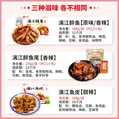 Lijiang drunken fish 188g original flavor * 1 bag (slightly spicy) Lijiang drunken fish 188g spicy * 1 bag (spicy) Lijiang fish skin 188g * 1 bag (sweet and spicy) Lijiang drunk fish tail 23