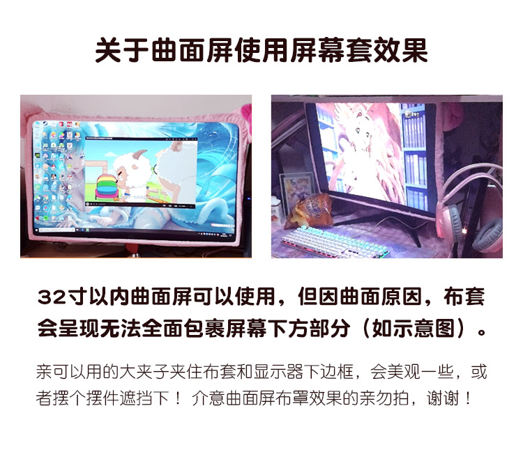 Cute cartoon computer bezel cover notebook dust cover LCD desktop cover plush curved screen protector