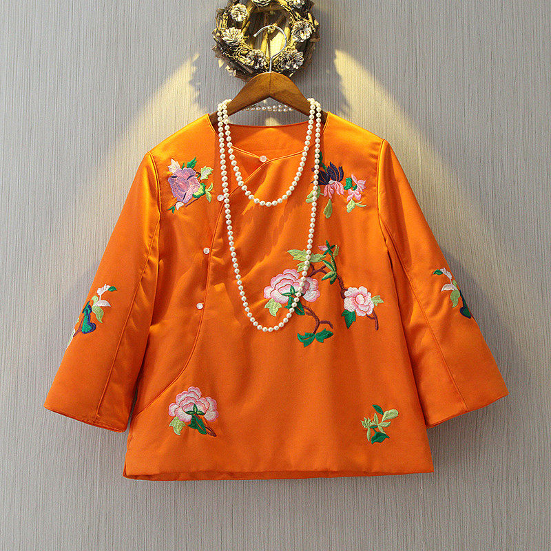 Genuine Small Good House 2022 Spring Chinese style Tang Dress Women Large Scale Code Round Neckline Embroidered Qipao Style Blouse Short Coat