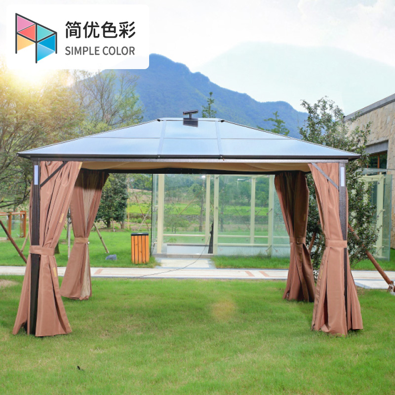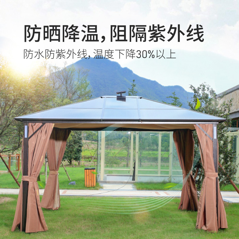 Outdoor pavilion outdoor aluminum alloy solar light charging sun shed sunshade rainproof European villa courtyard pavilion