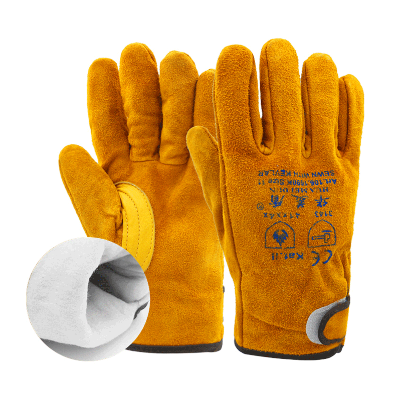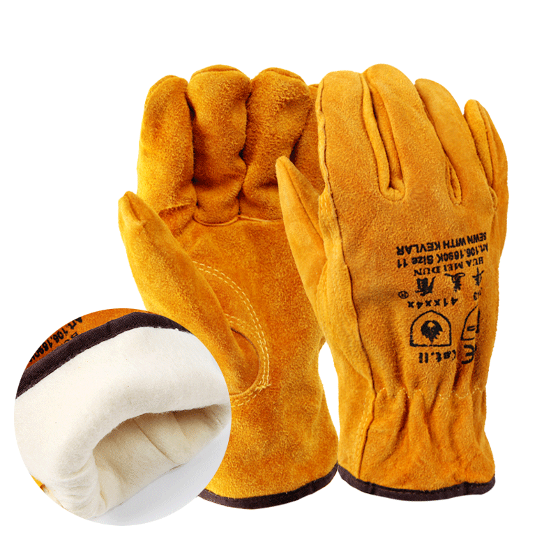 Winter cowhide labor insurance gloves electric welding welder handling plus velvet thickening warm wear-resistant cold-proof heat insulation high temperature resistance
