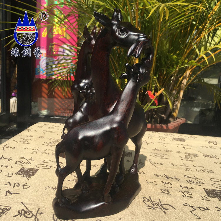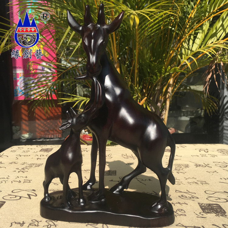 Edge Creatives Red Wood Solid Wood Engraving Pendulum Pieces Burmese Black Acid Branches Handicrafts Home Living Room Collection Little Deer