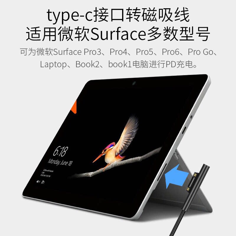 TYPE-C to Microsoft Surface tablet GO charging cable USBC to Pro3 Pro4 Pro5 Book
