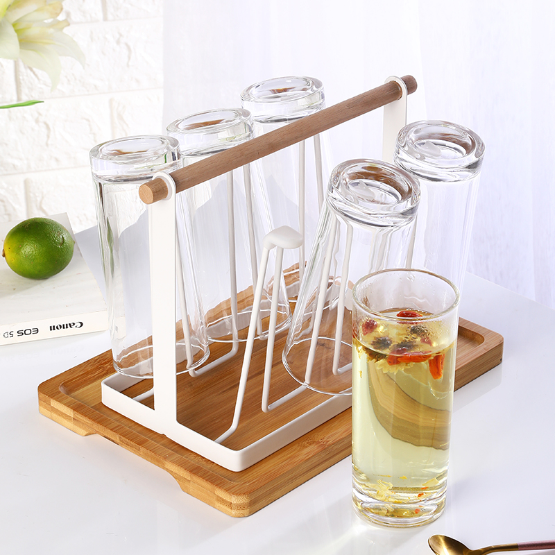 Glass 6pcs set with tray Juice drink cup Tea cup Lidless milk cup Household lead-free water cup