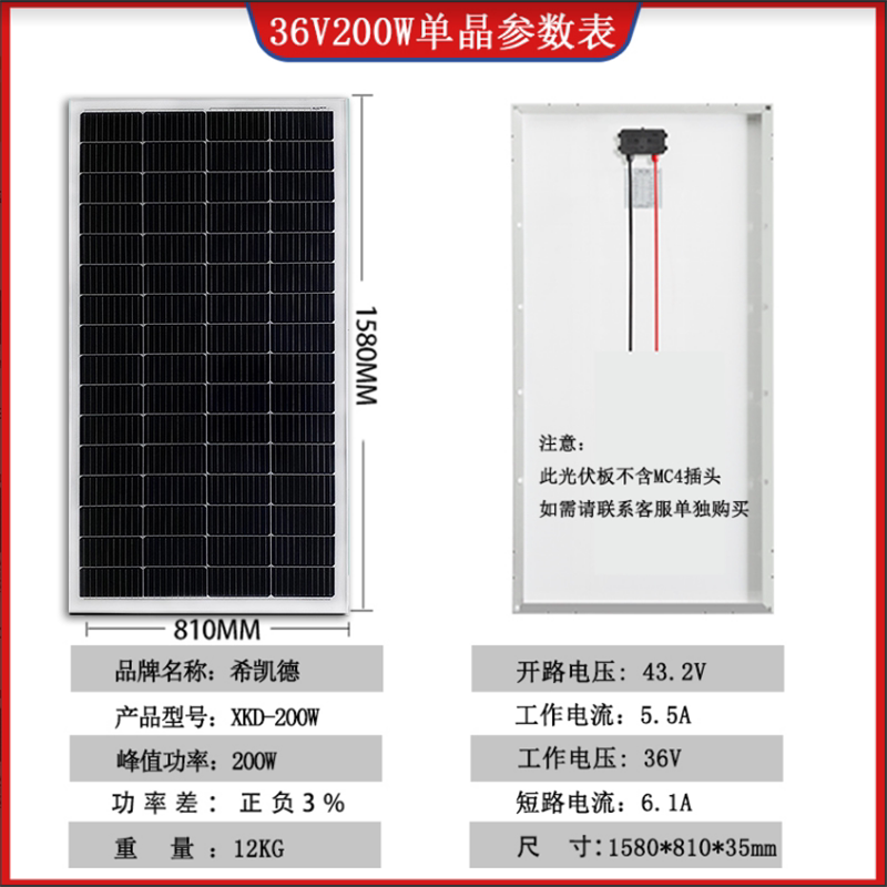 200W single crystal new photovoltaic panel 1640*670200W single crystal photovoltaic 1150*990200W single crystal 1580*810 (182 models) 200W light