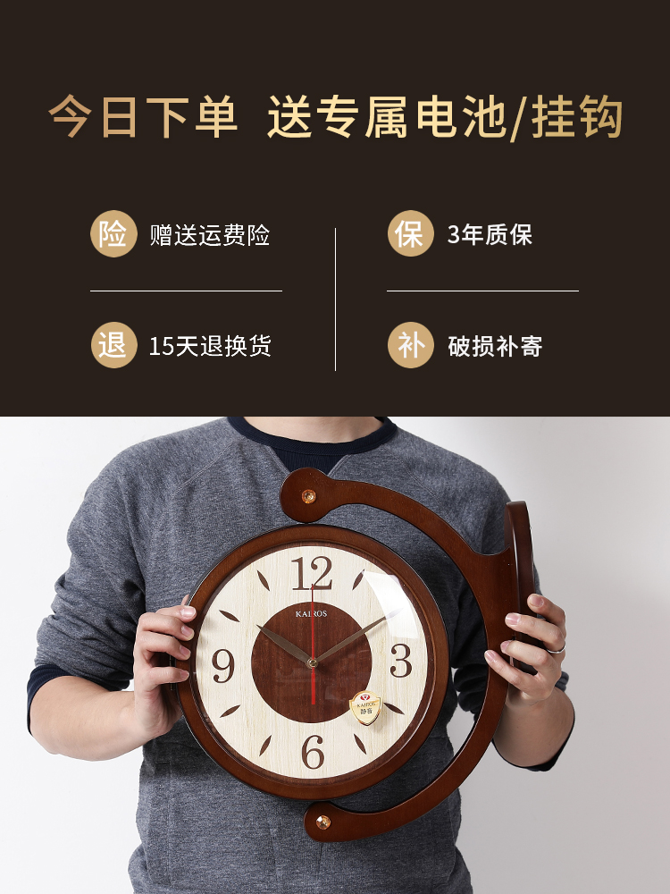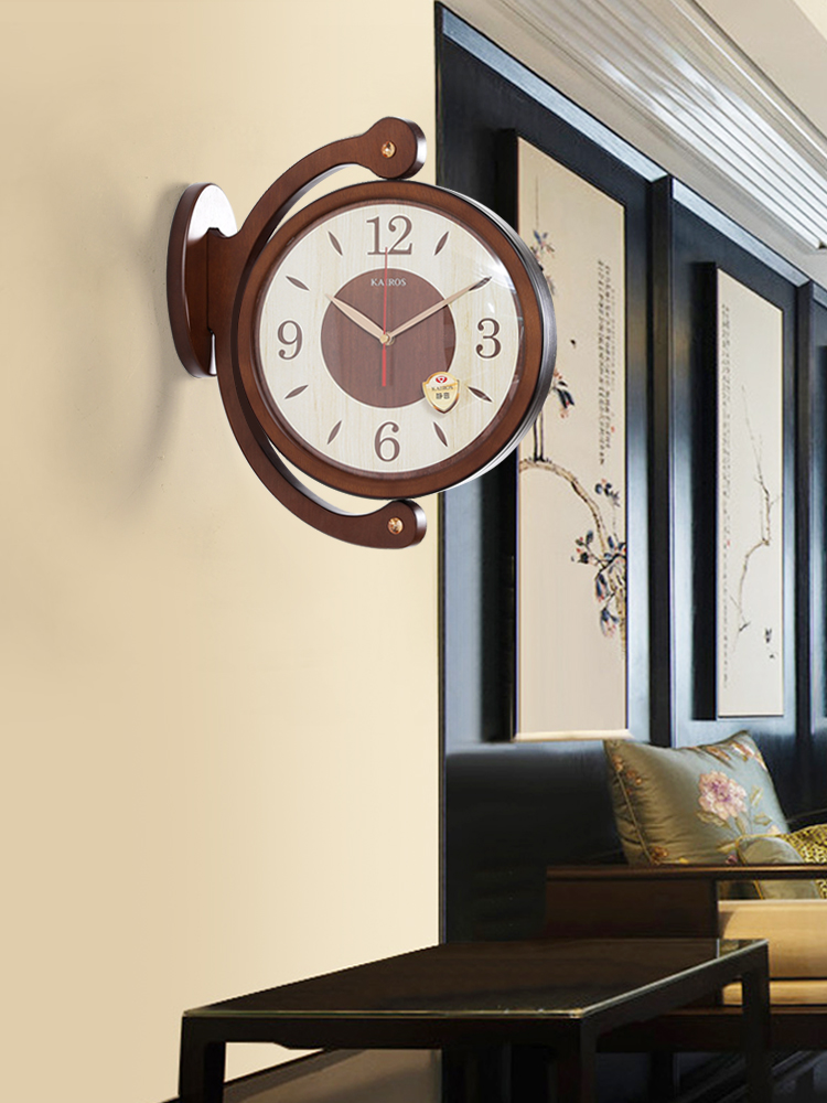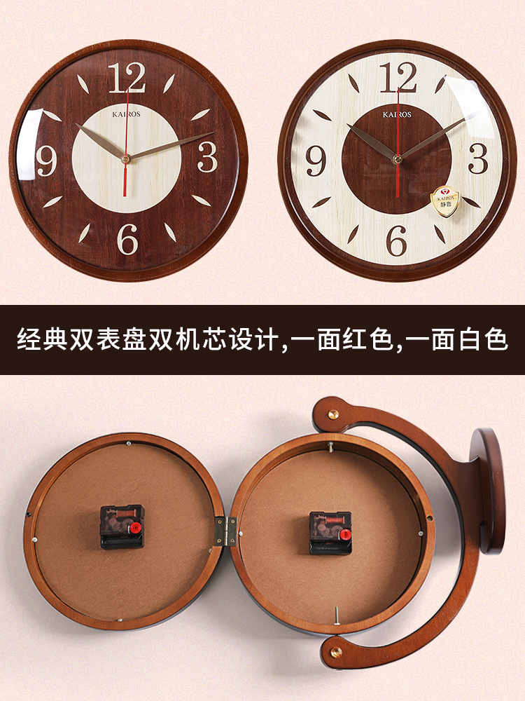 Solid wood double-sided wall clock living room creative clock Chinese simple two-sided clock fashion silent clock home decoration clock