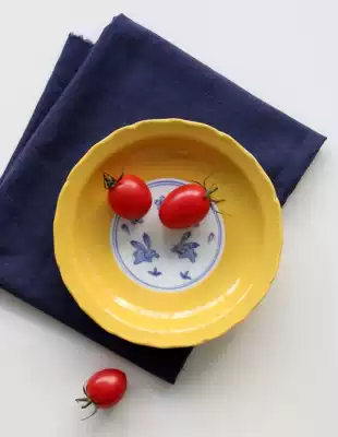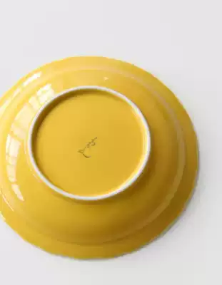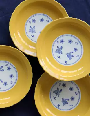 Spot Japan imported Hasami-yaki beautiful yellow glaze blue and white cherry blossom rabbit kwai mouth dinner plate folding edge plate