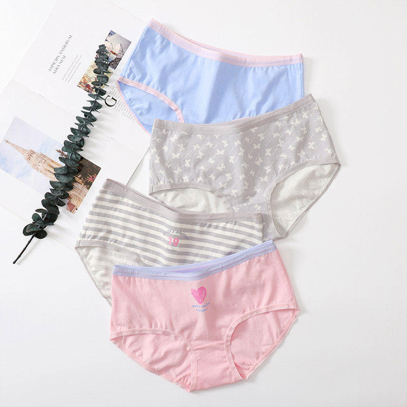 Butterfly Anven Panties Ladies Briefs Mid Waist Pure Cotton Crotch Print Freshener Approc. Soft Comfort Flat Corner 4 Gift Box Dress