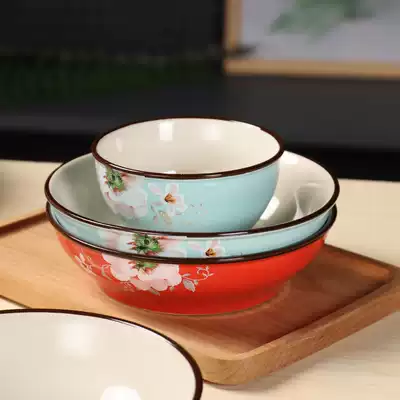 4 ceramic plate plate color applique household plate creative steak plate breakfast plate round plate
