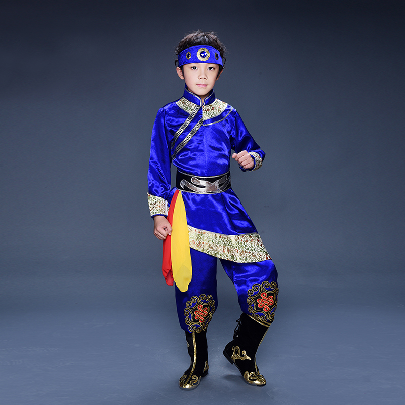 Mongolian children's dance costumes Minority boys Tibetan dance costumes Mongolian boys performance costumes