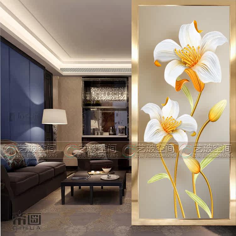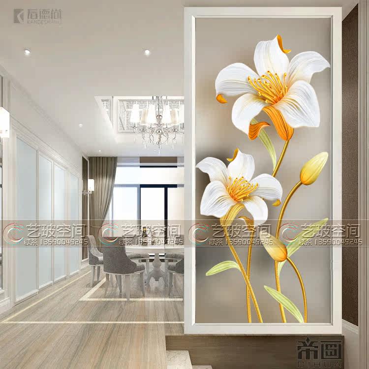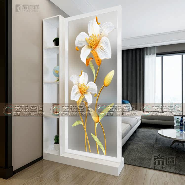 Art glass screen partition living room entry frosted tempering process Modern simple double-sided translucent lilies