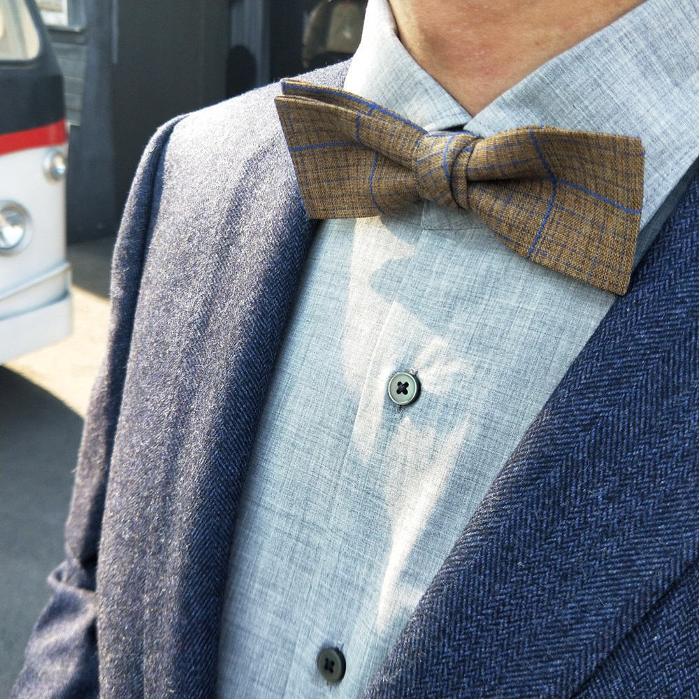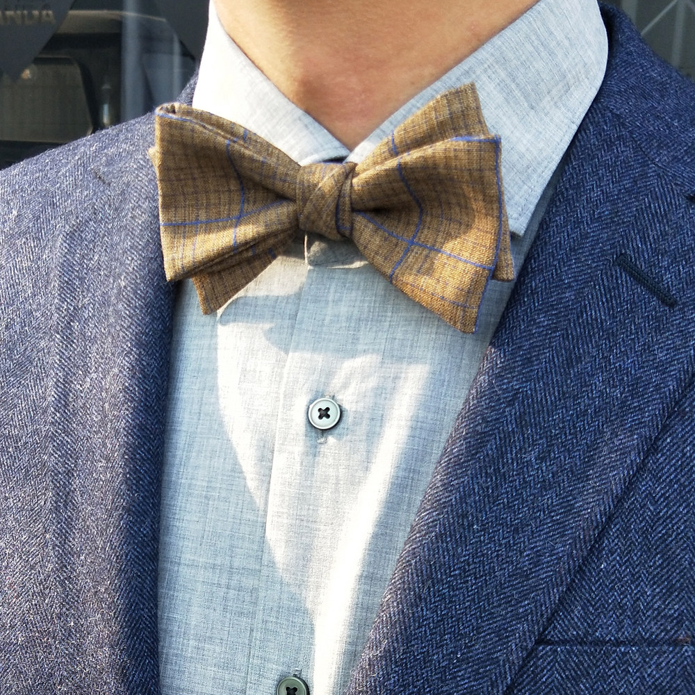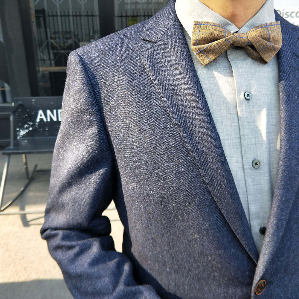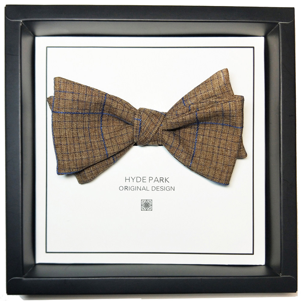 Hyde Park original wedding groom best man retro art British Korean Plaid men's wool cotton and linen bow tie