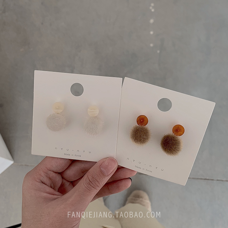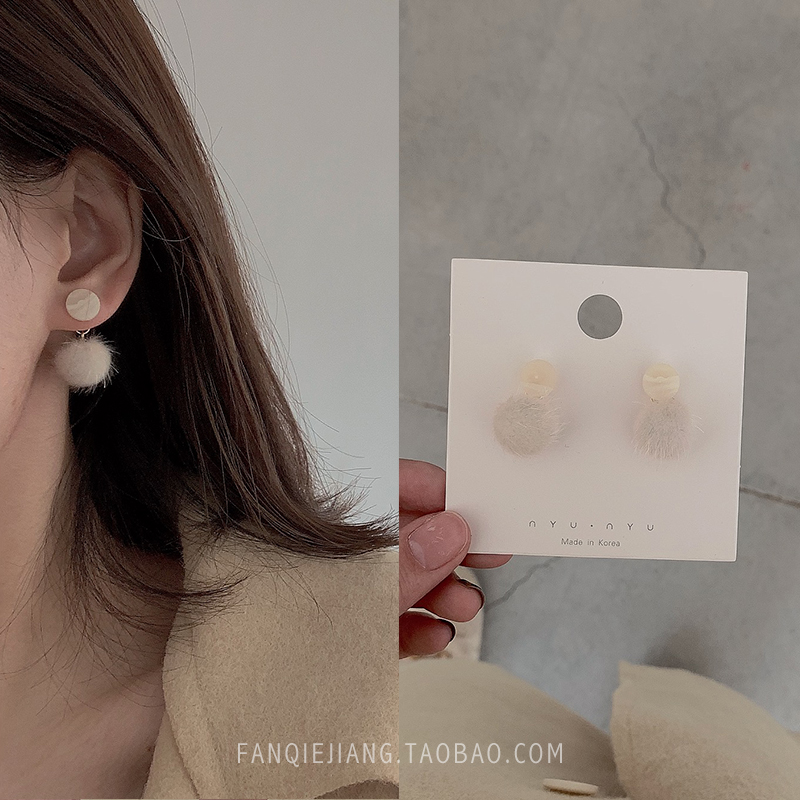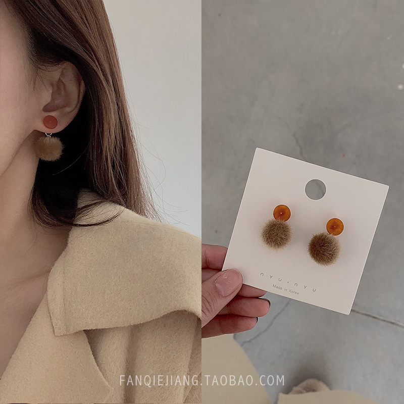 Autumn Winter Hair Balls Earrings Woman 2021 New tide Gas South Korean Jane Yootropin net red retro ear pendant 925 silver