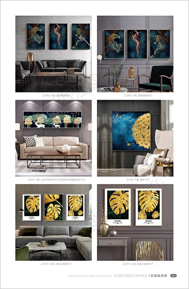 Light Extravagant Crystal Porcelain Painting Decoration Painting Minimalist Modern Decoration Painting High-definition Crystal Porcelain Painting New Chinese Triplex Picture Gallery