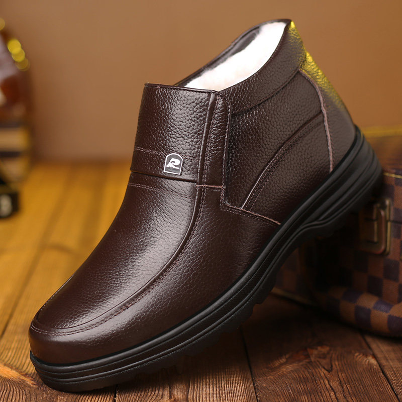 Cotton shoes male winter warm leather leather leather shoes old grandfather plus thickening anti-slip old daddy shoes