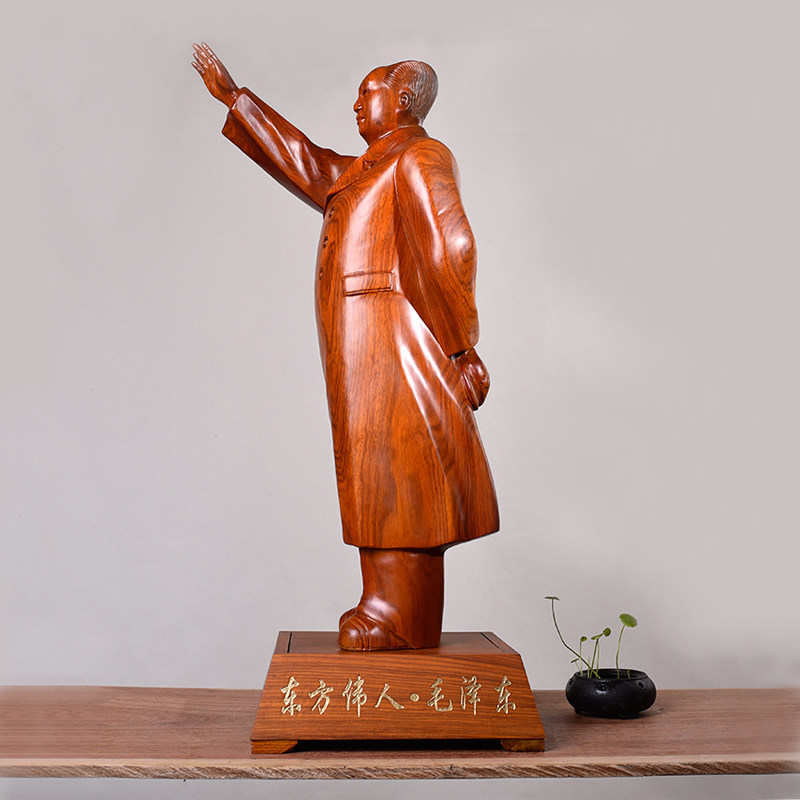 Yellow Flower Pear Carving Mao Chairman's statue admission Home Office Mao Zedong Hero Artificial Crafts