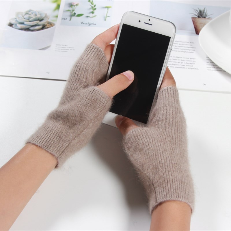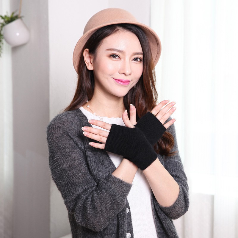 Mink velvet gloves winter women's cute half-finger cold-proof students write office thick fingerless gloves fashion warm men's autumn