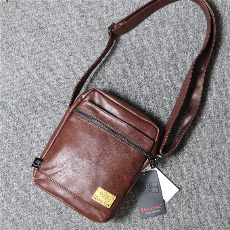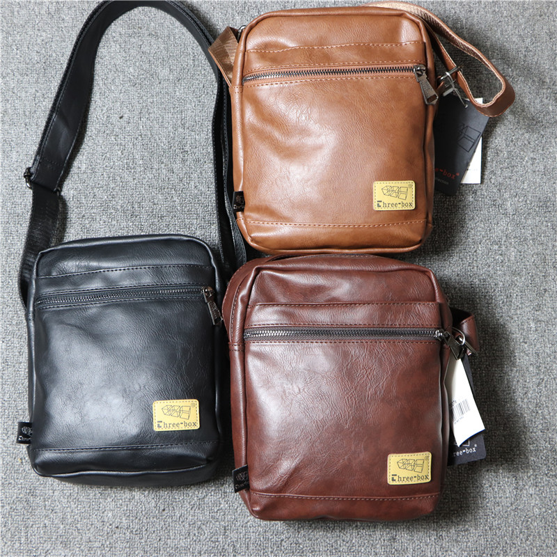 threebox men harp single shoulder bag day tie male style retro inclined satchel with soft leather square postman