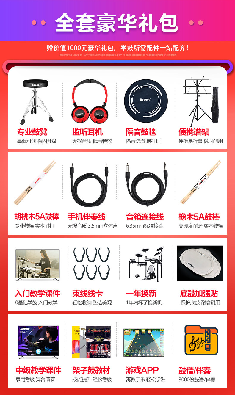 Beginner silicone 600S-5 drum 3 cymbals gift bag beginner silicone 600S-5 drum 3 cymbals package 30W Bluetooth speaker beginner mesh 600P-5 drum 3 cymbals gift package