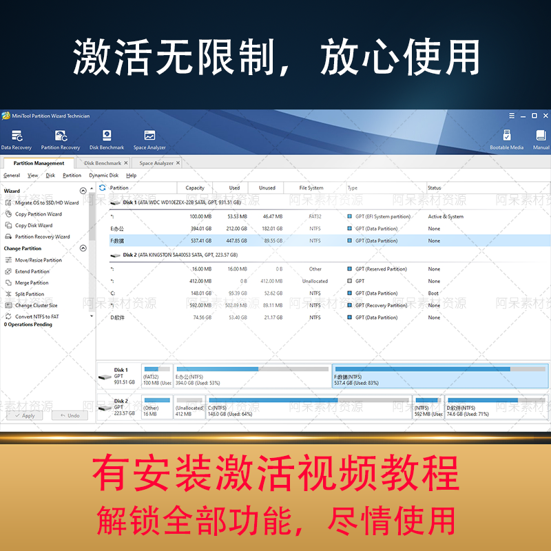 MiniTool Partition Wizard PC Disk Partition Merger Splitting Mobile Tuning Size Clones