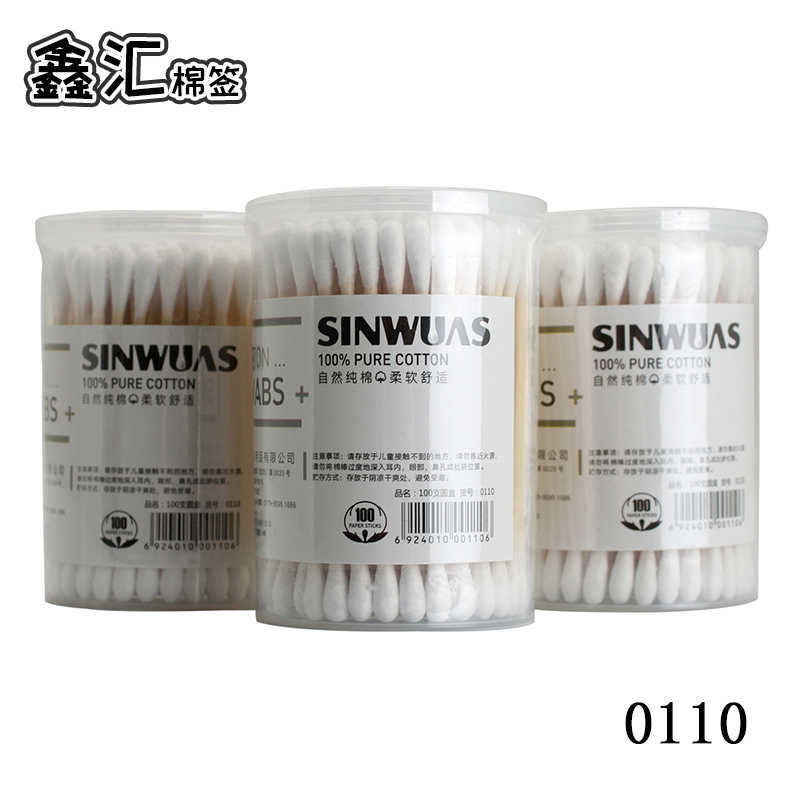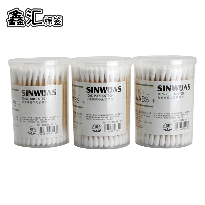 Xin Wire Cotton Stick Composition Wooden Pole Makeup Cotton Double Head Pure Cotton Tampon 3 Cylinders Total 300