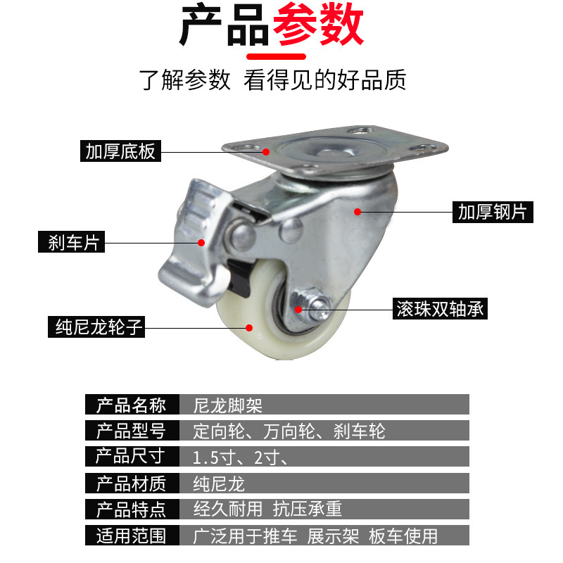 1 5 inch 2 inch universal wheel white nylon casters with brake wheel double bearing wheel M8M10M12 screw universal wheel