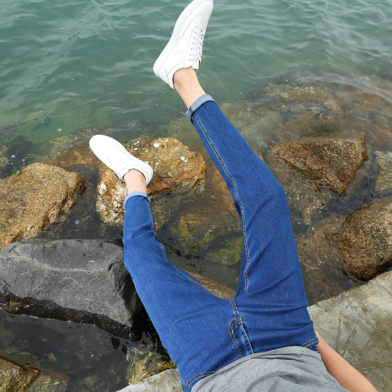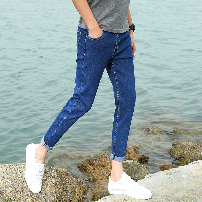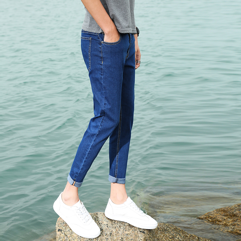 Summer thin Korean version of boys 90% denim jeans male student tide dark blue heed-up type smoke pipe pants 9 sub pants