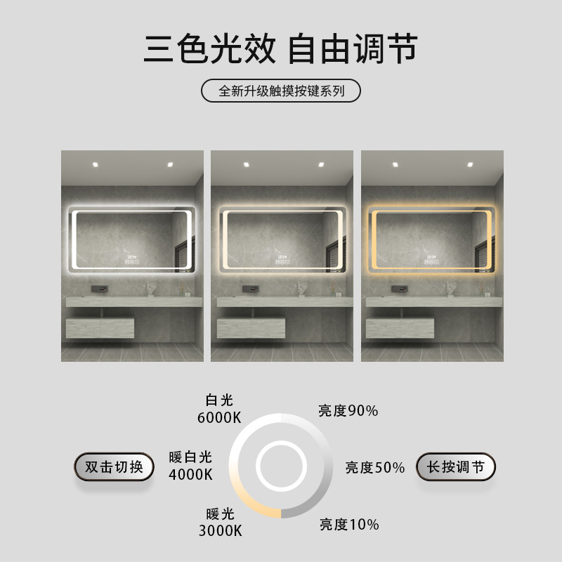 Bathroom mirror with light washstand rectangular bathroom mirror wall-mounted washstand light-emitting mirror led defogging mirror