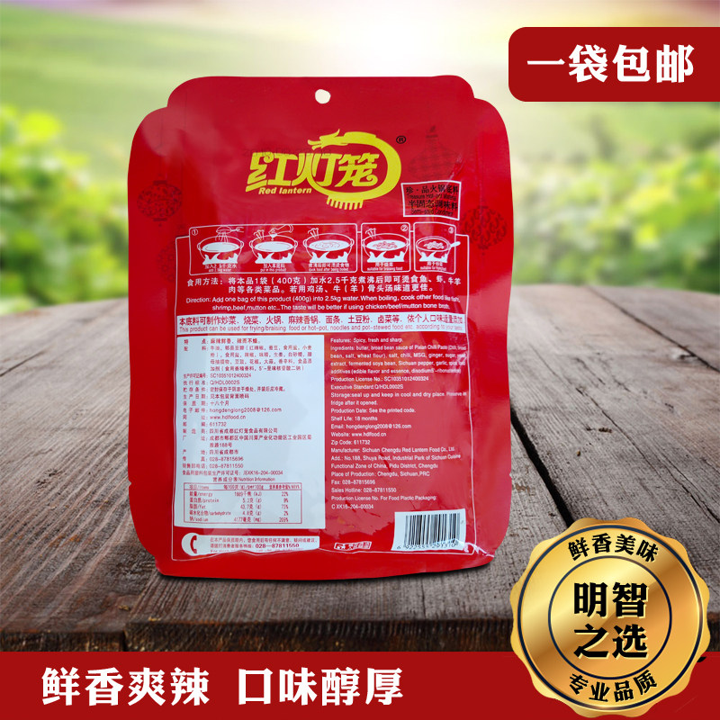 Red Lantern Hotpot Soup Bottom 400g Grams Sichuan Hemp Spicy Fresh Pan Savory Spicy Red Broth Spicy Hot Pot Brine special