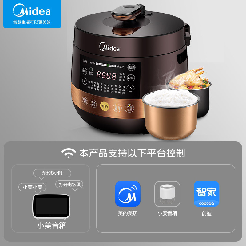 Midea Electric Pressure Cooker Home Smart 6L High Pressure Rice Cooker Double Gall Official Flagship 6 Special Price Fully Automatic 3