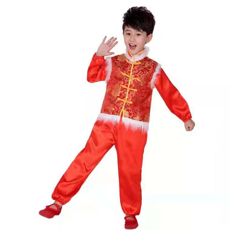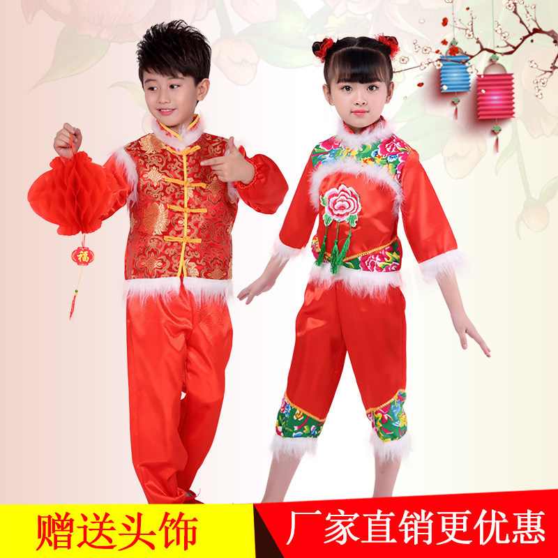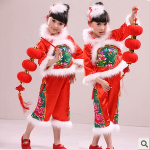 China's New Year's Day children play young children's rice seedlings song dance costumes girls dance big red lanterns performance clothes