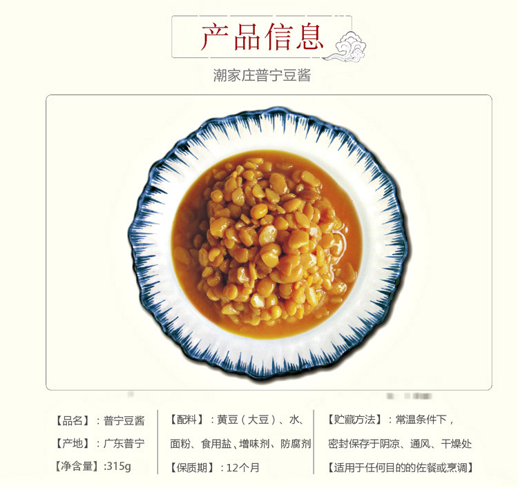Puning bean sauce Guangdong Chaoshan casserole porridge soybean sauce bean sauce old Chaojiazhuang Puning bean sauce official flagship store
