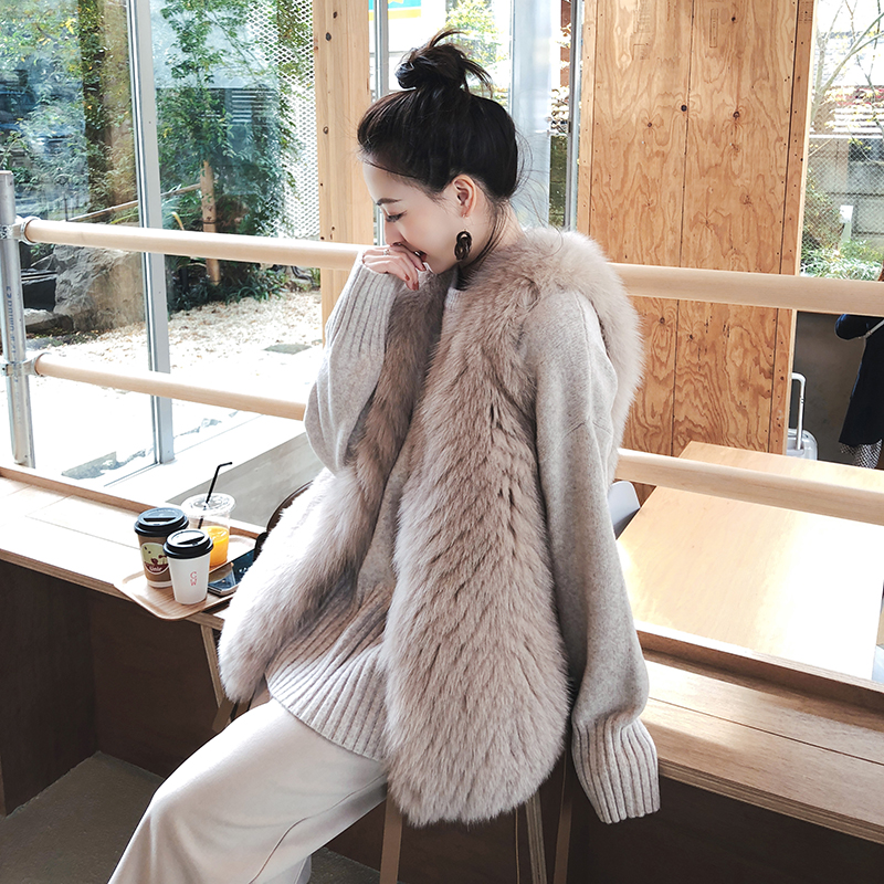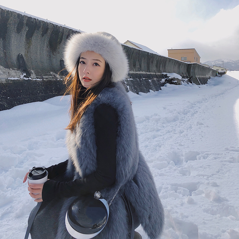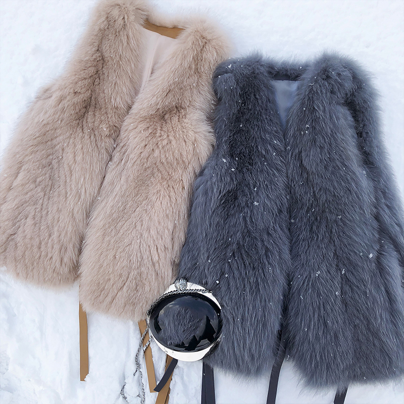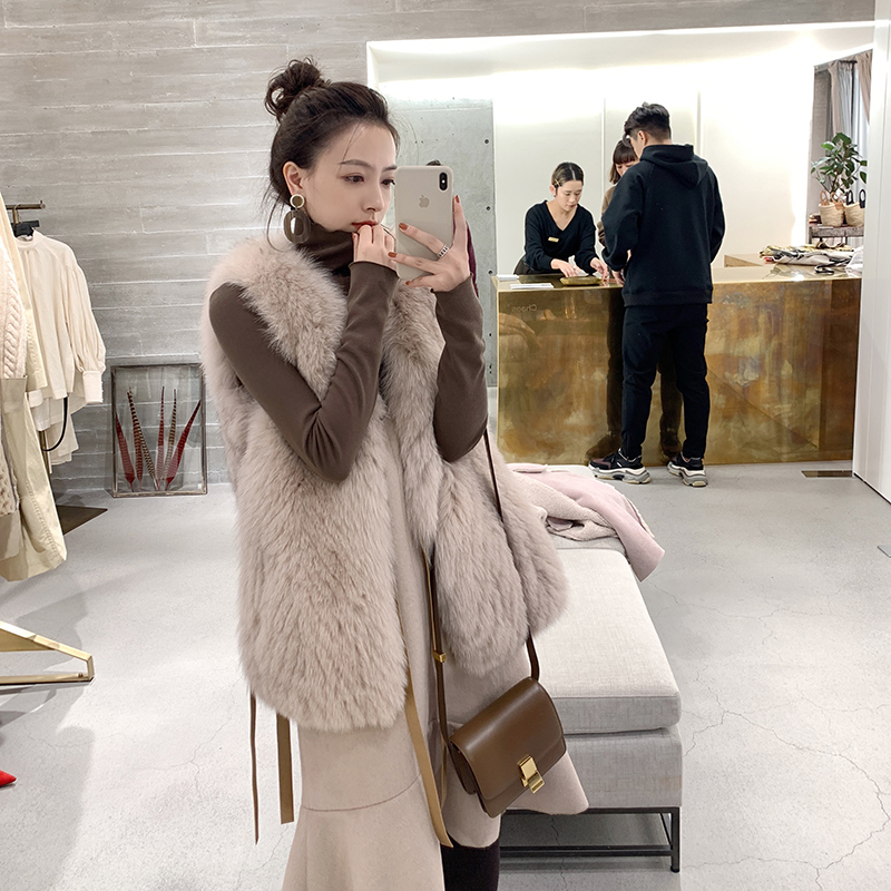 (7 Fold Clear Cabin) Summer Poetry Lamb Leather Splicing Fox Fur Straw Vest Lady Winter Fashion Horse Pinch Coat