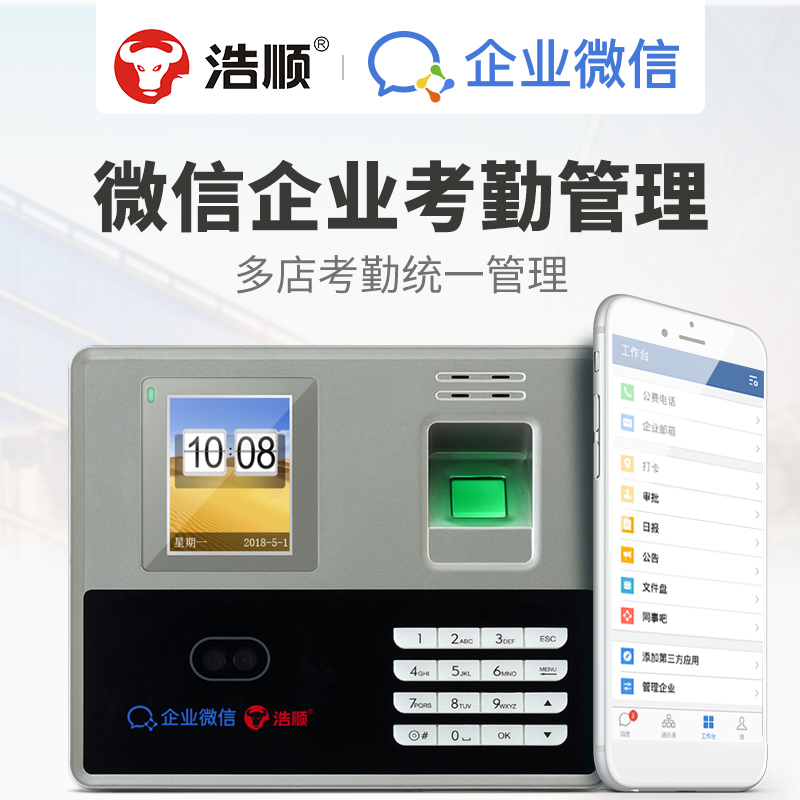 Haoshun F3369TW enterprise WeChat attendance machine wireless WIFI face facial recognition instrument sign to employee finger brush face intelligent networking fight card clock to work card control machine