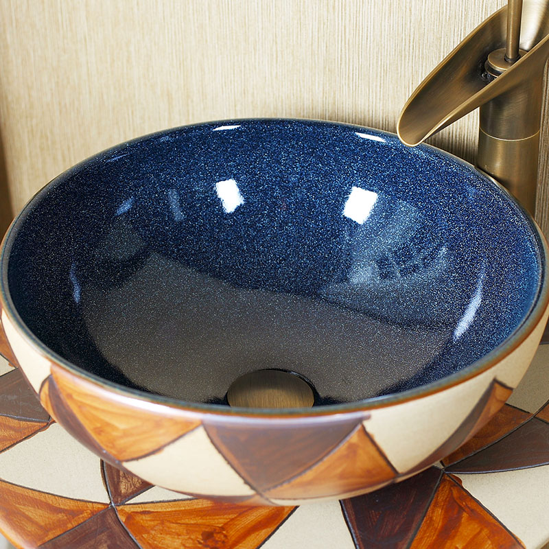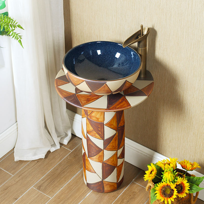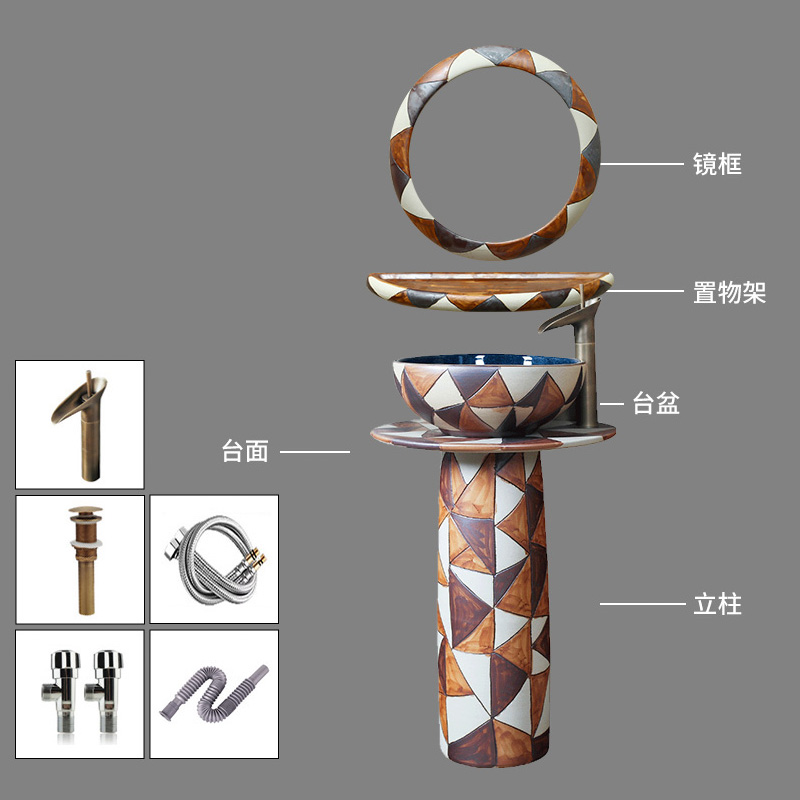 Retro ceramic washbasin Terra basin integrated column type washbasin upright post basin make-up room upright floor-type column basin