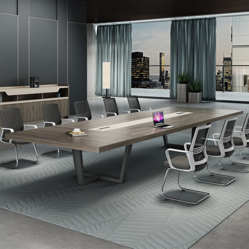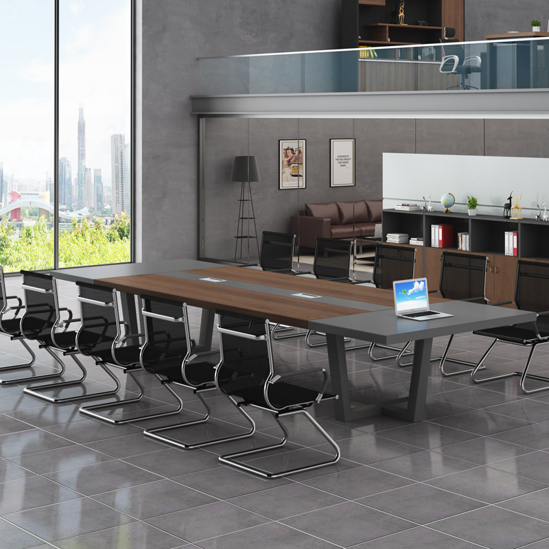 Guangdong conference table Long table and chair combination Simple modern creative steel frame negotiation table 10-person industrial style conference table