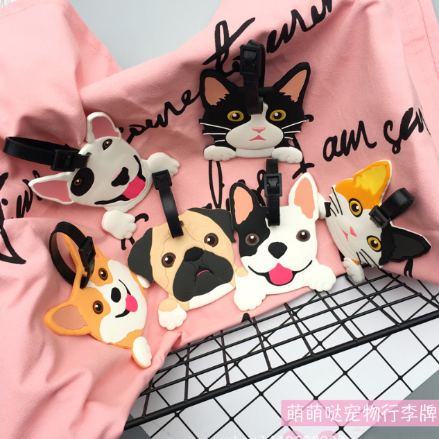 Pet dog luggage card girl card cartoon flower cat personality suitcase listed anti-loss travel boarding board