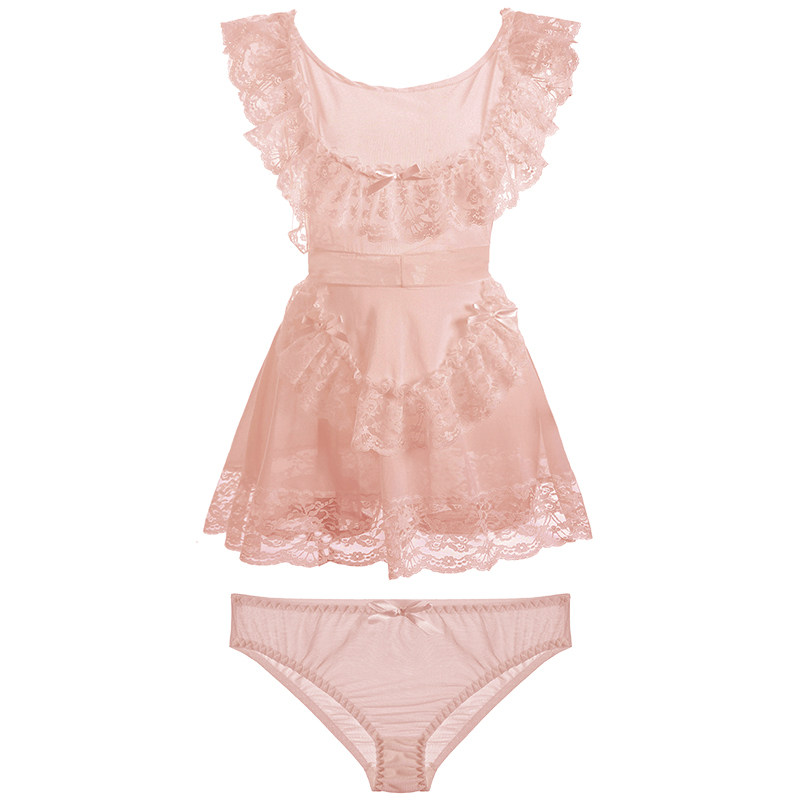 Sexy pajamas women's summer lace transparent mesh seduction Hot strap girl bed skirt Maid night dress