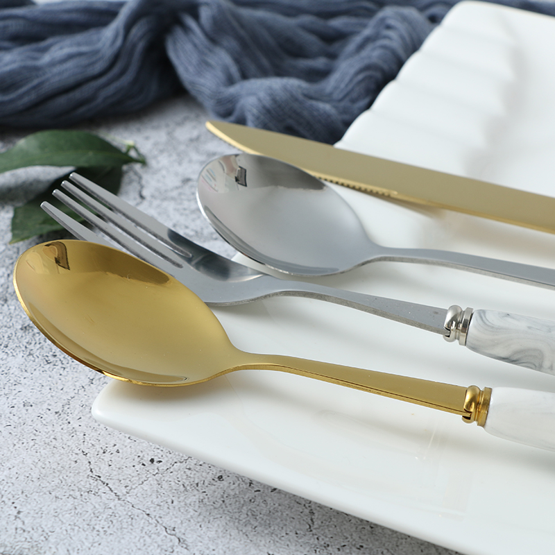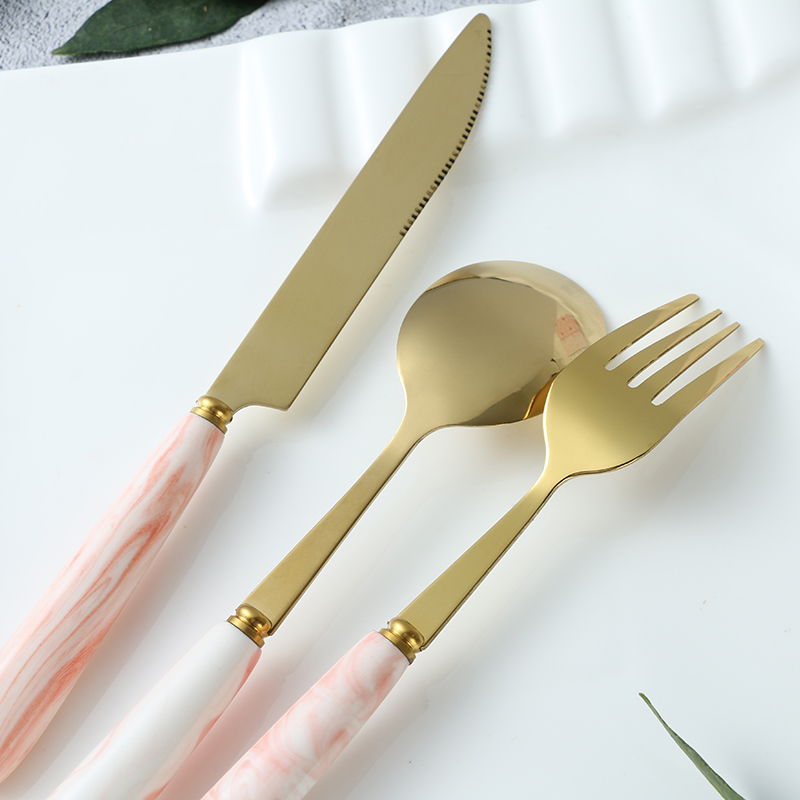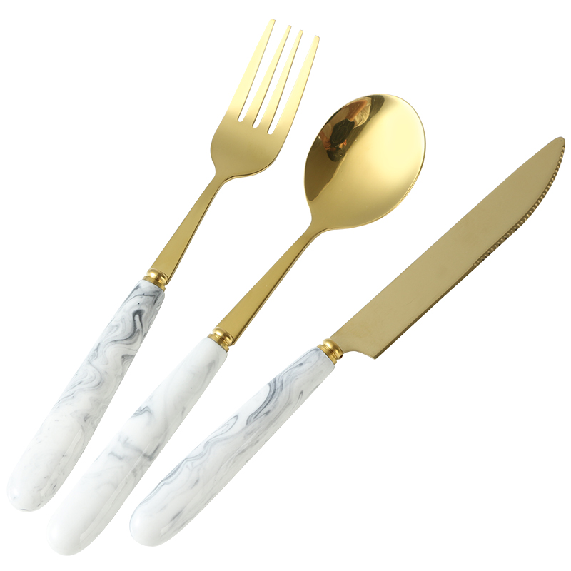 Marbled ceramic handle knife and fork European-style steak western food knife and fork three-piece set household 304 stainless steel spoon