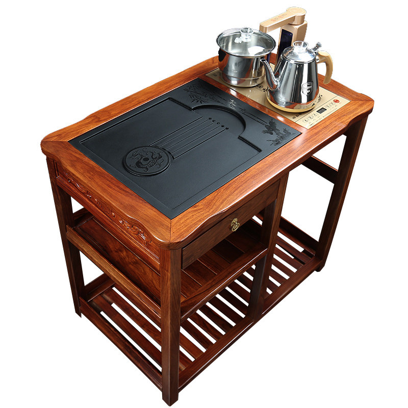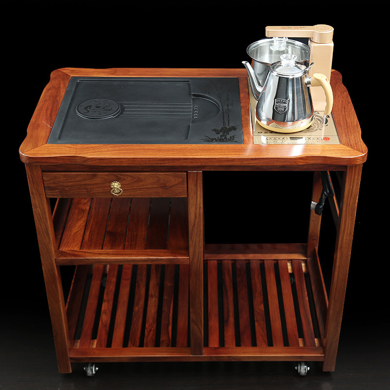 01 flower pears wood tea car full automatic quick cooking pot 02 flower pears wood tea car electric appliance hole active plate 03 single flower pear wood tea car