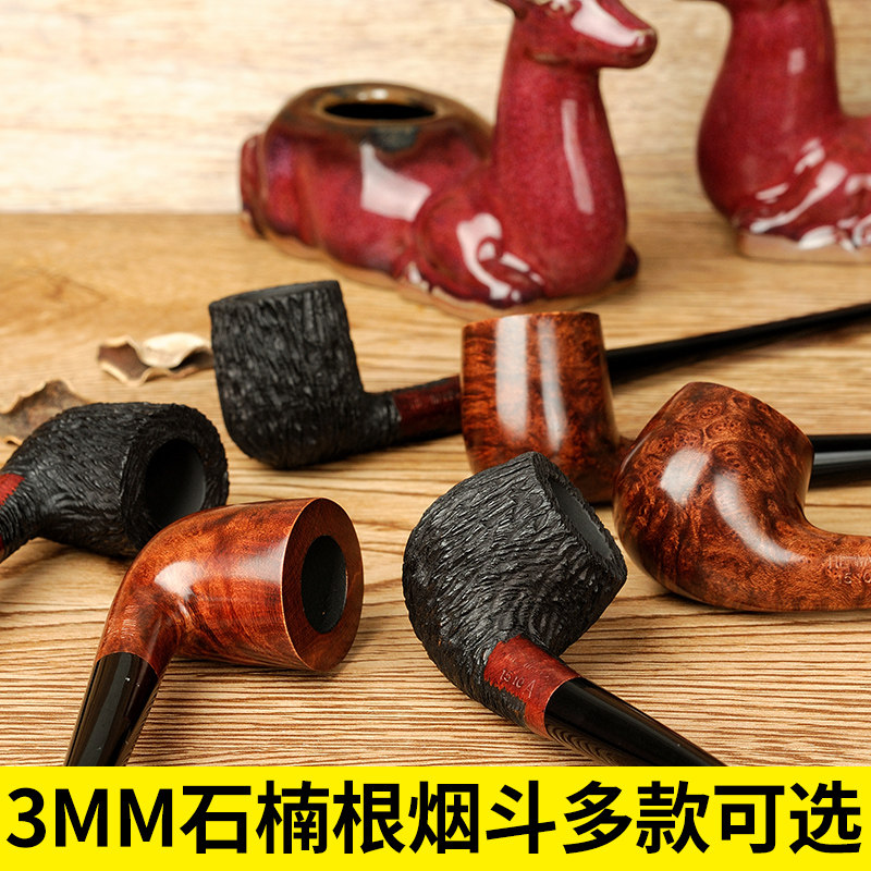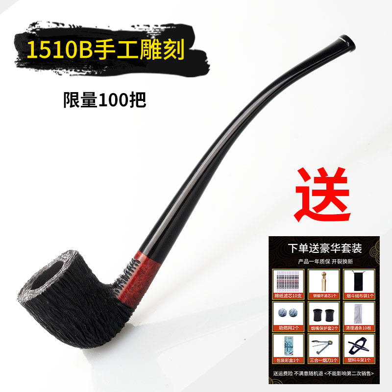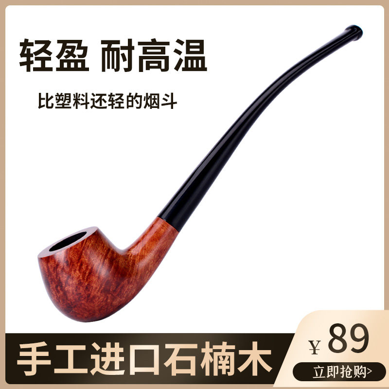 Mouth Food still imported briar wood pipe curved small solid wood pipe men's reading long pipe handle pipe set
