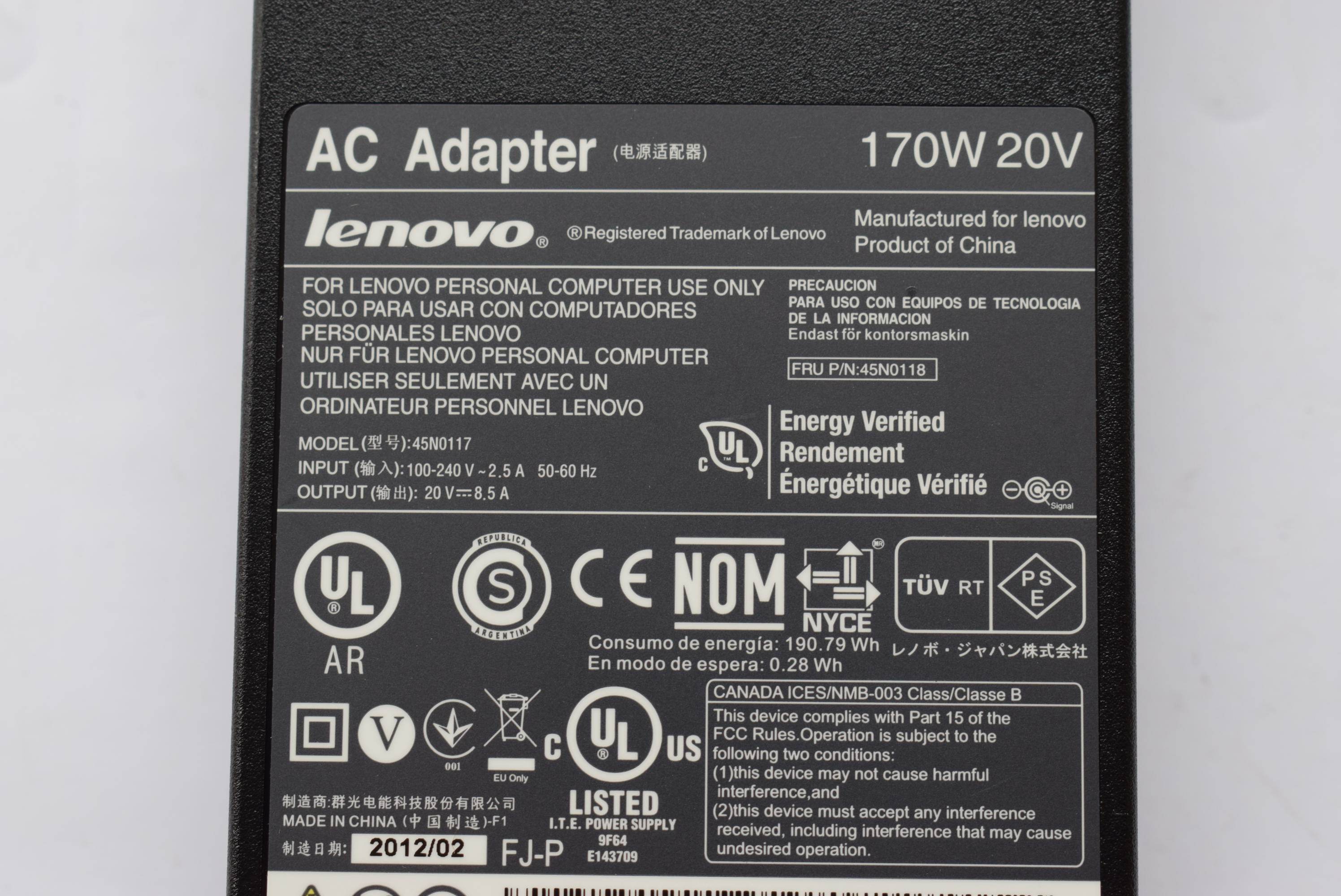 Original Lenovo ThinkPad 45N0117 W520 W530 20V 8 5A 170W Power Adapter