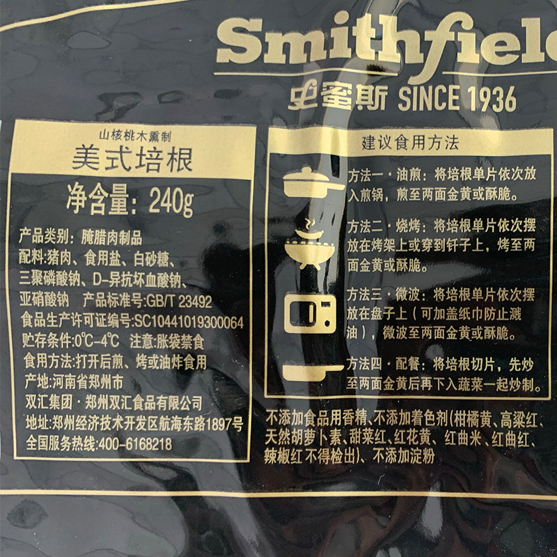Smithfield Smith American Bacon 240g*5 Bag Original Cut Bacon Breakfast BBQ Hand Grab Cake Hoard