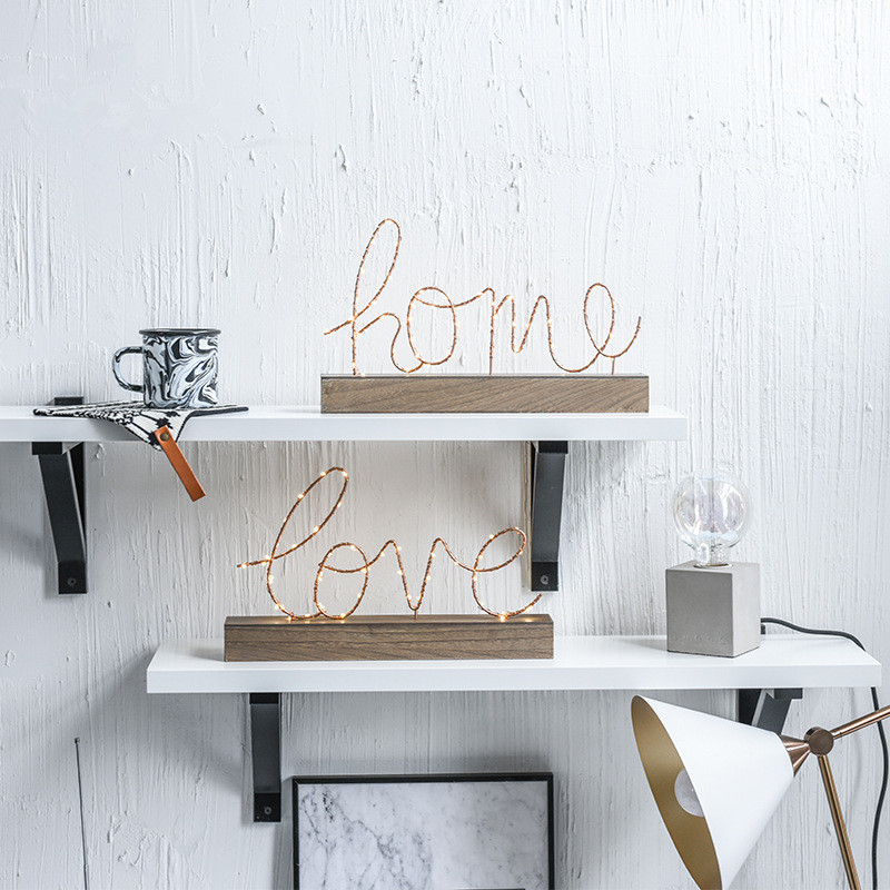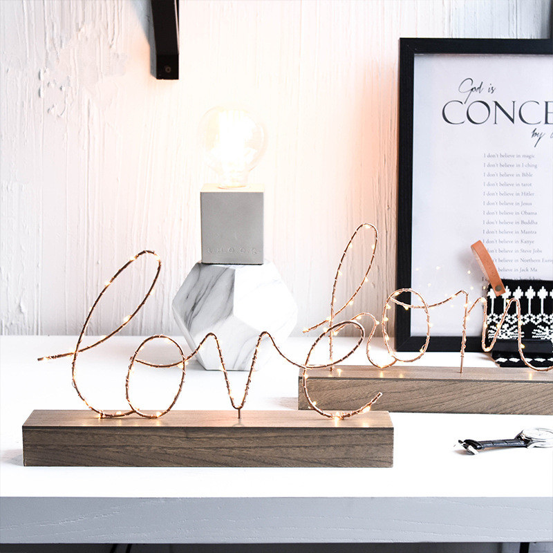 Nordic INS creative home accessories decoration bedroom bedside wrought iron wooden bottom love letter night light decoration