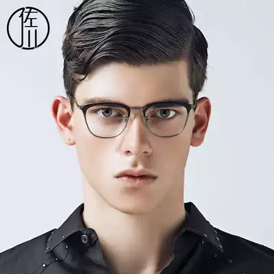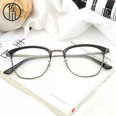 Sagawa retro half-frame myopia eye frame male round face plate frame female myopia with literary black frame myopia