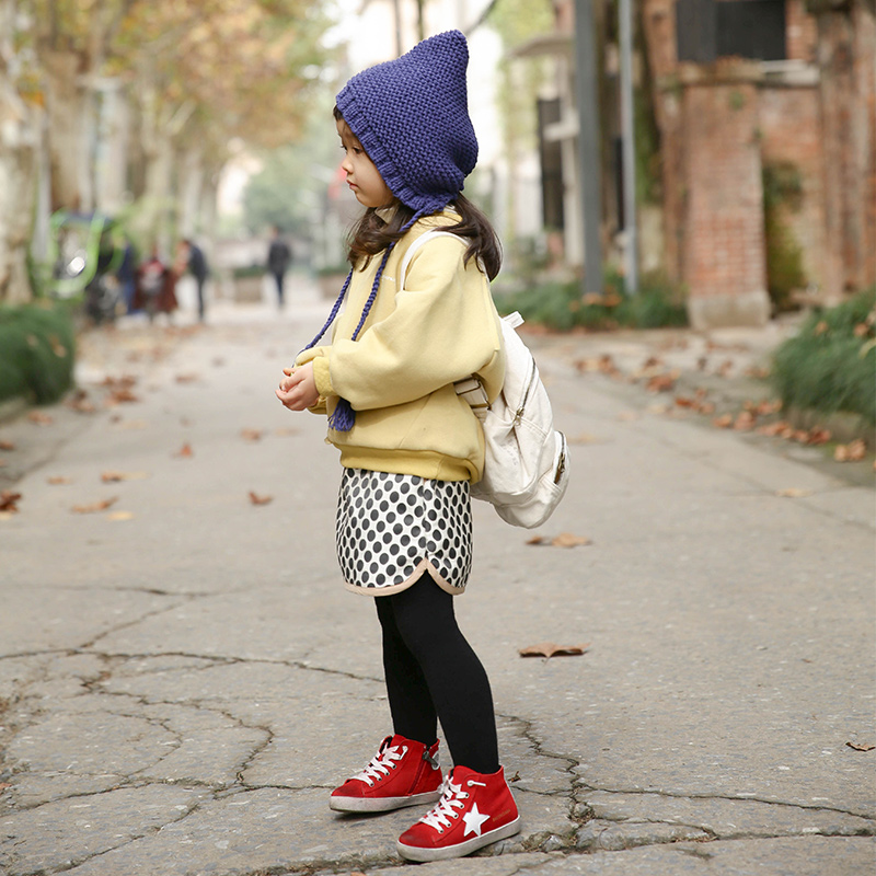 Pear small idle girl's winter style plus suede thickened splicing high neckline thickness cotton T children fresh cover headblouse E84V1789