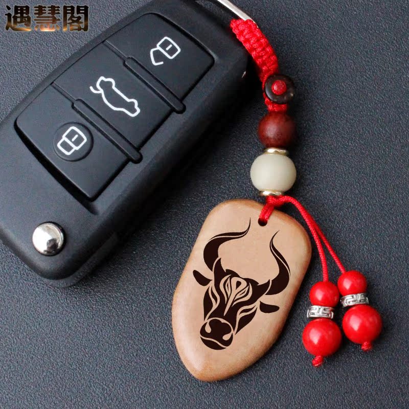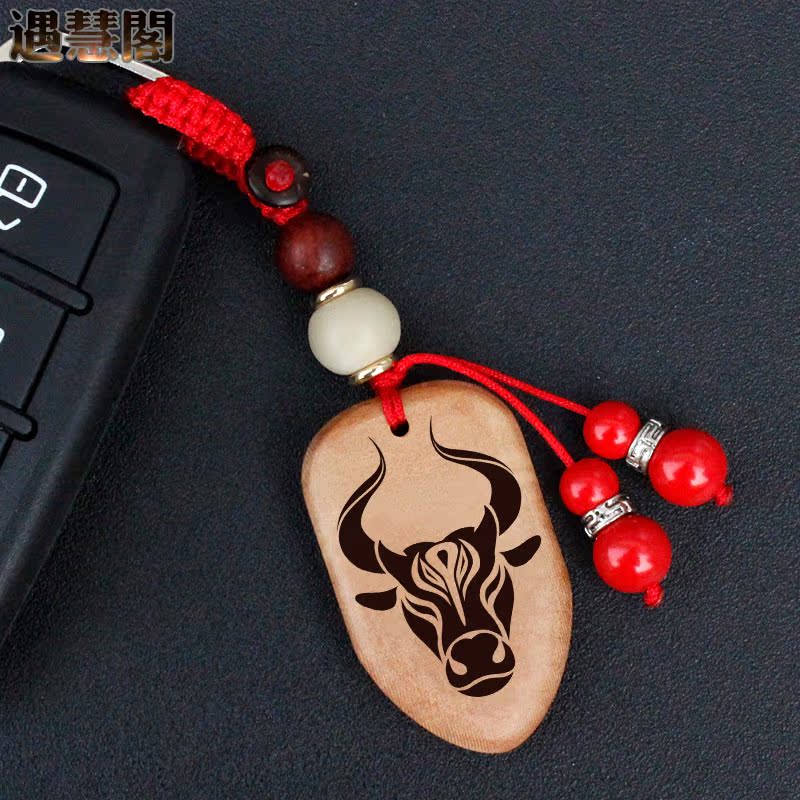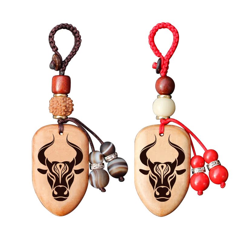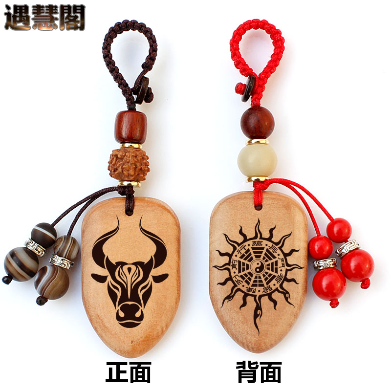 Zodiac cow Kaiyun Body shield Peach wood 12 zodiac animal mascot men and women carry in and out of peace